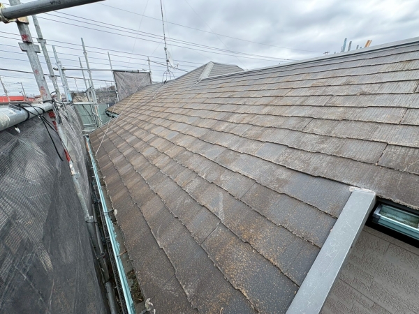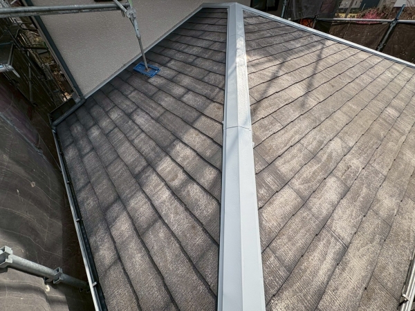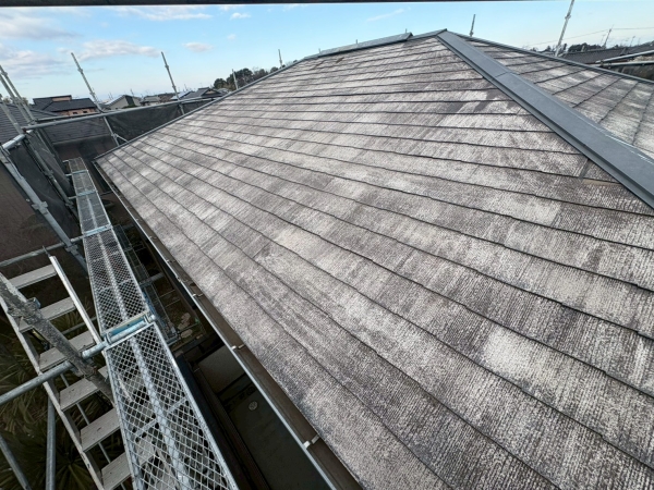 屋根の劣化が激しく見られたため、ニッペのパーフェクトベスト強化シーラー2回、上塗り2回の計4回塗り仕上げにて施工させていただきました。